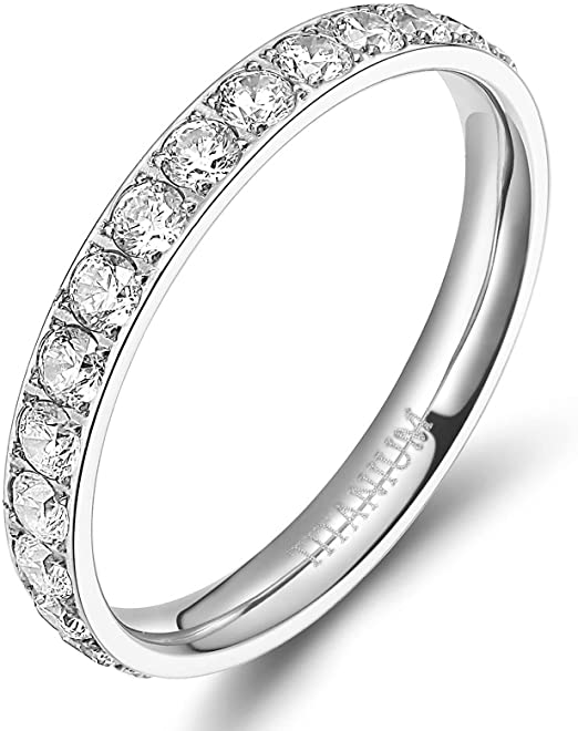 GRADE 3mm Women Titanium Engagement Ring Cubic Zirconia Eternity Wedding Band Size 3 to 13.5