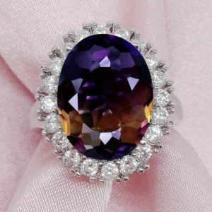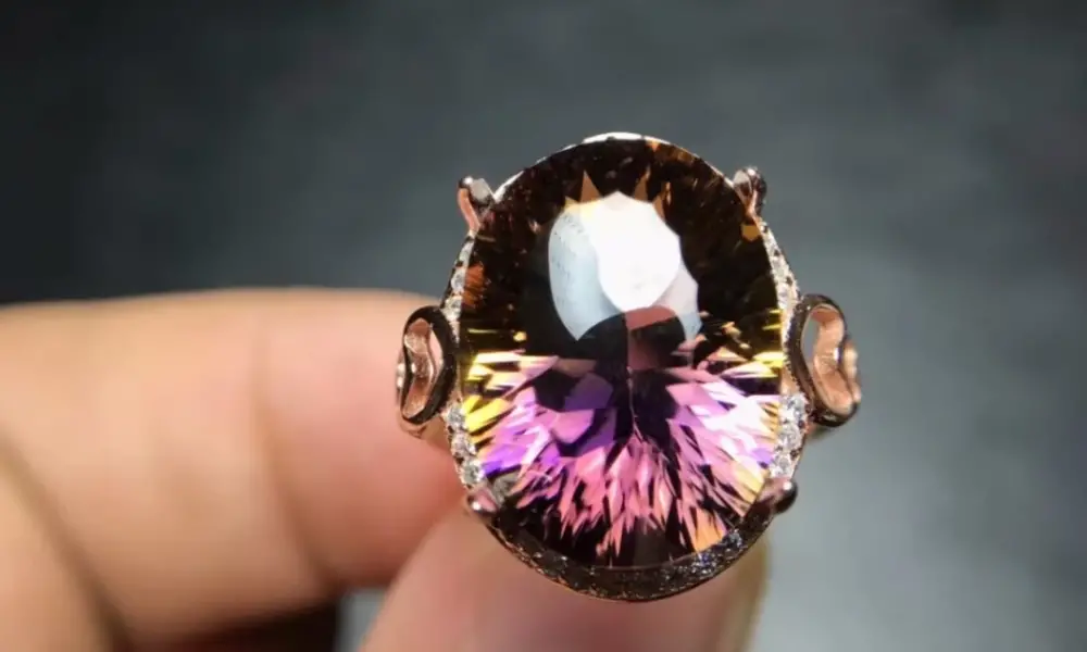 Traditional oval and round-facet stones are the most popular, followed by step-cut styles. To increase light reflection, Can add checkerboard facets to the crown. Because the modified cutting-styles increase light reflection and brilliance, Portuguese cut and scissor cut, Ametrine is becoming increasingly popular. Skilled cutters may also try to blend the colors, resulting in a stone with a mix of yellow, purple, and peach tones. Ametrine is a famous stone for ‘artistic’ gem cutters because they can use skilled techniques like concave-cut faceting to play with the colors and create patterns. Ametrine carvings, such as carved gemstone animals and other natural objects, are very popular.