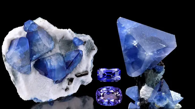 It is found solely in California’s most mineralized region, the New Idria Mining District, in San Benito County, USA (more than 150 semi-precious minerals and gemstones). At the southern end, known as the “Diablus Range,” there is a mountain range with basalt, chert, grey wack, shale, serpentine, and Cretan and Tertiarian sandstone. It’s a high-altitude belt. Benitoite crystals are generated from hydrothermal solutions containing relatively high amounts of rare elements such as barium, titanium, fluorine, and iron. Albite, joaquinite, natrolite, neptunite, and serpentine are the most common minerals found in this. The last mineral generated at the benitoite deposit was natrolite, which covered all of the deposit’s minerals. As a result, the natrolite must be removed with acid (HCl) in order to expose the benitoite crystals.