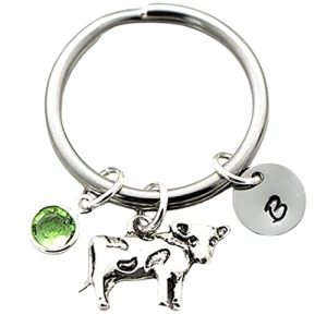 Cow Keychain for Kids – Cow Key Ring – Personalized Birthstone & Initial – Cow Gifts for Cow Lovers – Made in the USA