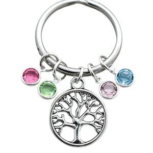 Mom Birthstone Keychain – Family Tree Jewelry – Mother’s Day Gift for Mom or Grandma