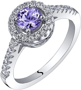 0.50 Carat Tanzanite Halo Ring Sterling Silver Sizes 5 to 9
