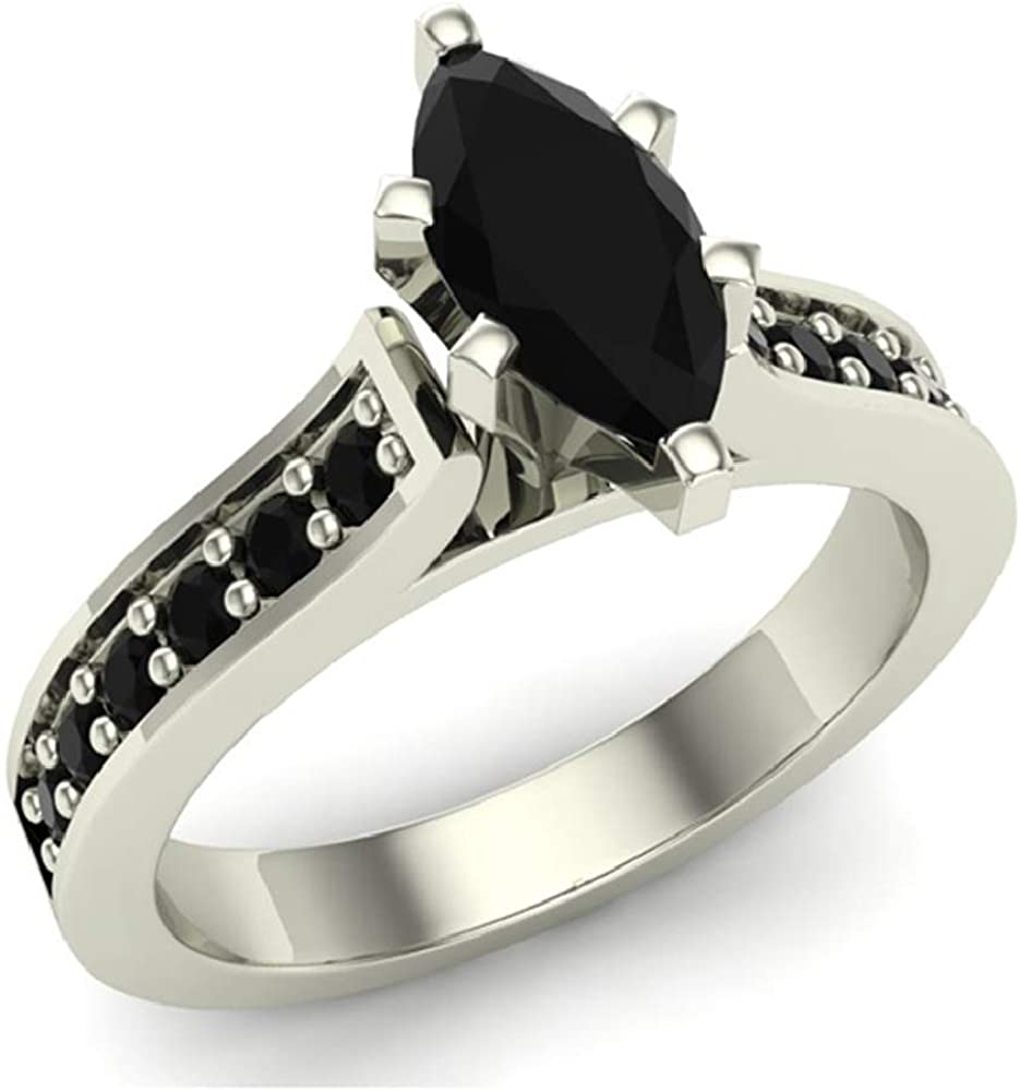 Marquise Cut Black Diamond Engagement Ring 1.00 ctw 14K Gold on Sterling