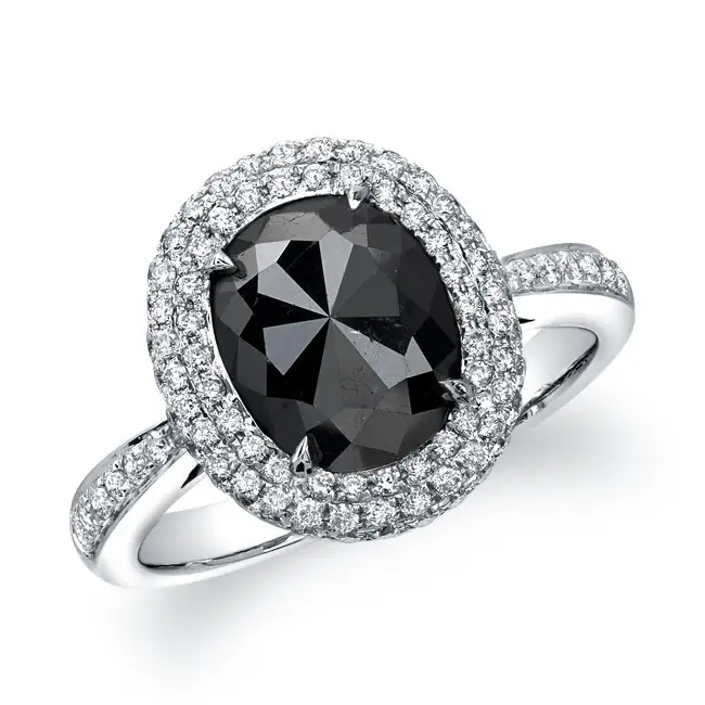 - Since black is often associated with death and superstition, some people may be surprised by seeing this non-traditional stone as an engagement ring. Yet with the right setting and other white diamonds it can be appreciated for its own unique beauty and overcome this.