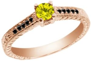 Gem Stone King 0.34 Ct Canary and Black Diamond 925 Rose Gold Plated Silver Engagement Ring