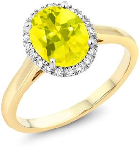 Gem Stone King 10K 2-Tone Gold Oval Canary Mystic Topaz and Diamond Halo Engagement Ring 1.80 Ct (Available 5,6,7,8,9)