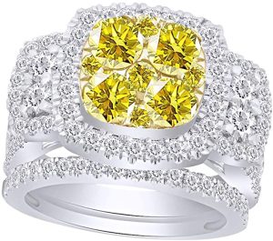 3 Cttw Womens Round Canary Natural Diamond Halo Bridal Engagement Ring Band Set 14Kt Solid Gold (Yellow Color, I2-I3 Clarity, 3 Carat)