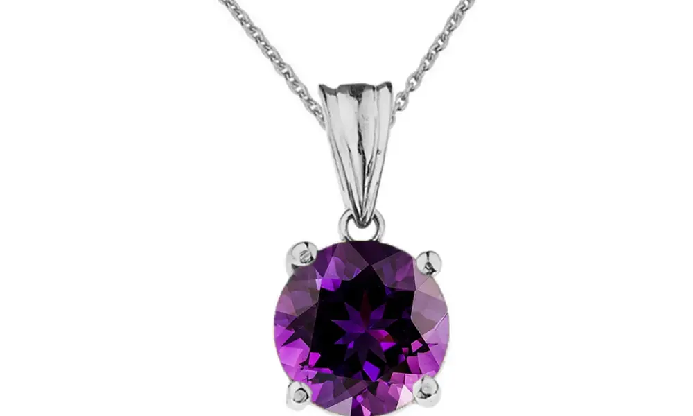 - DEEP PURPLE AMETHYST GOLD PENDANT FOR WOMEN – We’ve taken the timeless solitaire favorite and gave it a colorful twist with our Peora 14K Gold Pendants Collection. Features natural gemstone and genuine Peora Amethyst, Pear Shape, 10x7mm, 1.55 Carats with its signature Deep Purple hue for a luxurious glow. Stone has a flattering checkboard faceting, punctuated with a genuine white Round Brilliant Cut Diamond, 0.05 Carat, set in 14 Karat White Gold for the maximum sparkle at every angle.