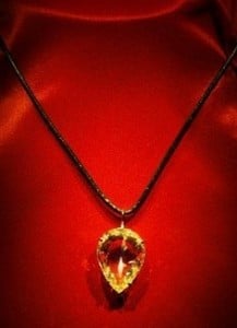 The incredible 24-carat yellow diamond (below), famously known as the Moon of Baroda, was worn by Monroe at the Hollywood premier of Gentlemen Prefer Blondes. The diamond belonged to the royal dynasty Gaekwad Maharajas and Empress Maria Theresa of Austria. Reportedly to be cursed, the diamond was said to have been the source of Monroe’s misfortune and ultimately, her death.