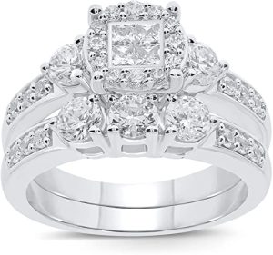 - Genuine 10k White Gold Engagement Ring and Band will never tarnish or fade.