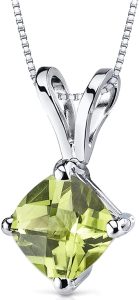 - WOMEN’S TIMELESS PERIDOT JEWELRY – Our Peora 14K Gold Pendants Collection has given the traditional solitaire favorite a vibrant twist. Natural Peora Peridot, Cushion Cut, 6mm, 1 Carat, with its characteristic Rich Leaf Green tint for a rich shine. Checkerboard faceting is hand-cut and set in 14-karat white gold for maximum shine. A flexible and attractive piece of jewelry is a must-have.