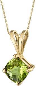 - WOMEN’S TIMELESS PERIDOT JEWELRY – Our Peora 14K Gold Pendants Collection has given the traditional solitaire favorite a vibrant twist. Natural Peora Peridot, Cushion Cut, 6mm, 1 Carat, with its characteristic Rich Leaf Green tint for a rich shine. Checkerboard faceting is hand-cut and set in 14-karat yellow gold for maximum gleam. A flexible and attractive piece of jewelry is a must-have.