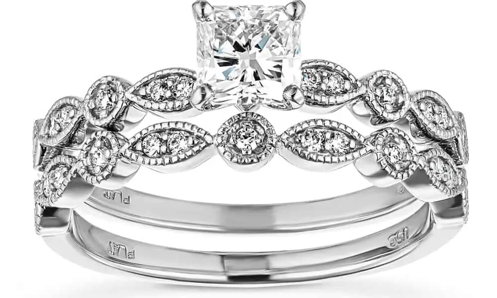 - One engagement ring and one wedding band are included in this bridal set.