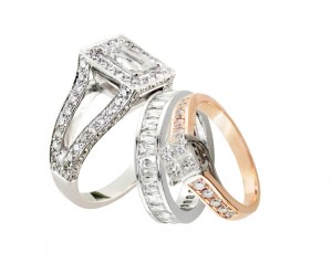 Whether looking for an engagement ring, anniversary or wedding band, couples can find high quality jewelry set with simulated diamonds that look and act like natural diamonds for a fraction of the price.