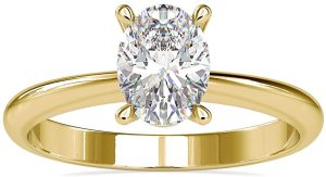 - Bright oval-cut solitaire that shines brighter than diamonds Moissanite is a classic engagement ring crafted of pure gold that never goes out of style. It’s a great way to show off your personality daily. Wear it to witness every significant event. The distinctive cut shape creates a gorgeous appearance, bringing brilliance and exquisite beauty to the bride’s hand.