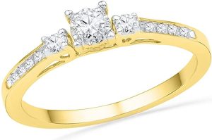 Solid 10k Yellow Gold Round White Diamond Engagement Ring OR Fashion Band Prong Set 3 Stone Shaped Past Present Future Ring (1/6 cttw)