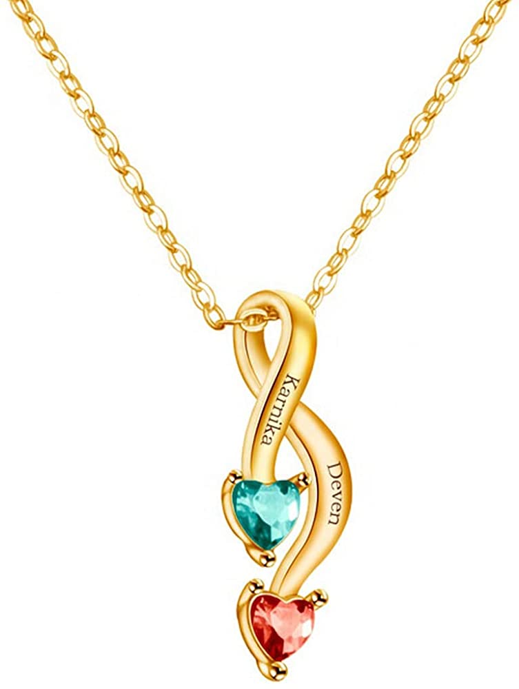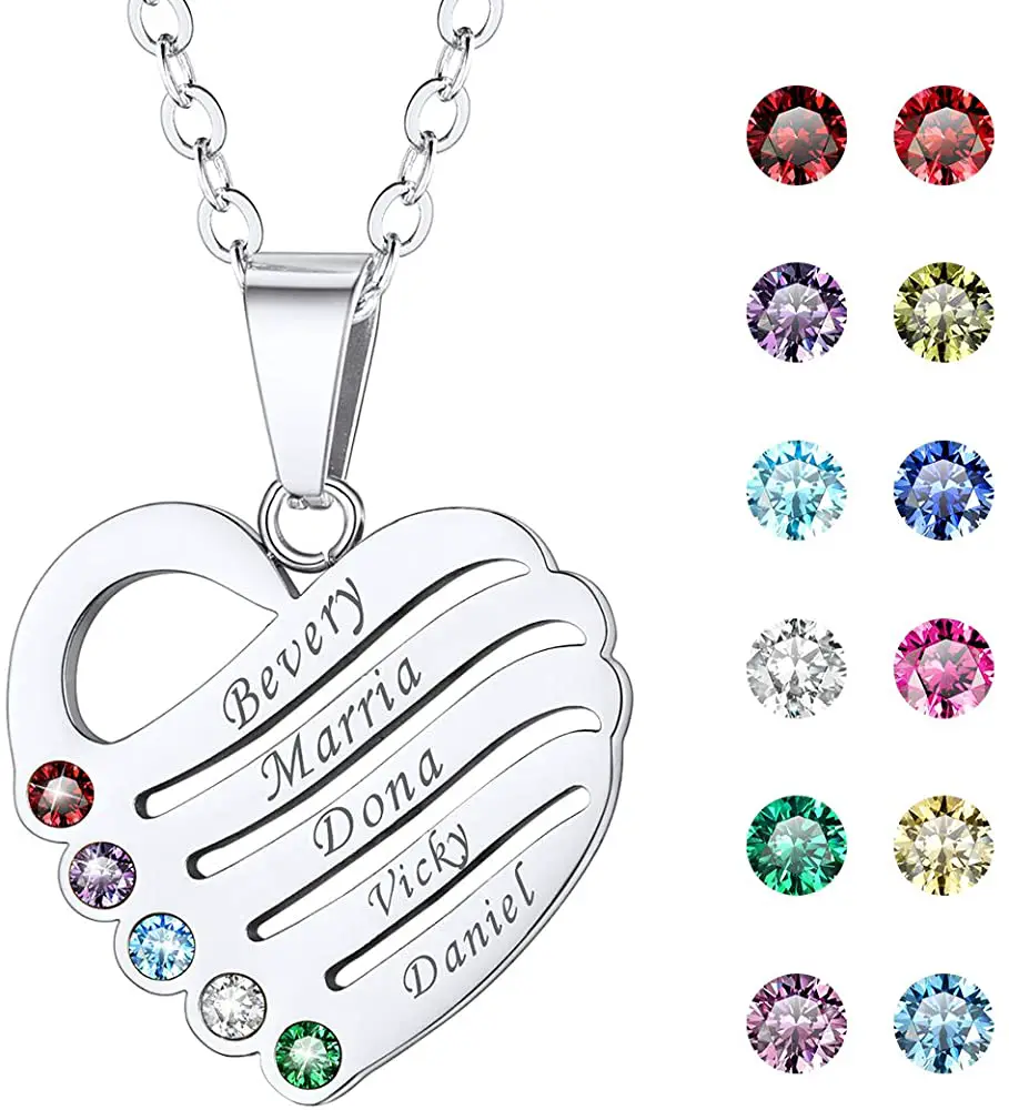 - MEANINGFUL Personalized Heart Name Necklace]—–Love Heart Pendant Engraveble & Cubic Zirconia Simulated Birthstone. Unique Gift:You can design it with your choice of 2 Simulate Birthstones, and engraving 5 special date / name on the pendant. daily love reminder of love, friendship, family,team between you and your lucky receiver. Custom One for yourseld and personalized one as present