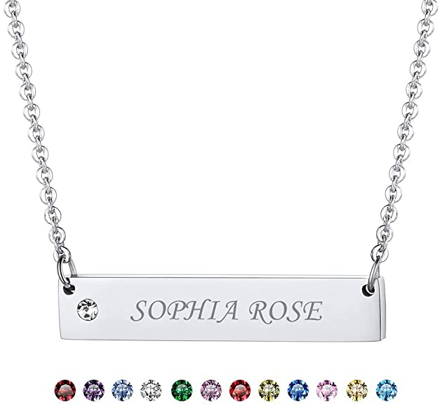 - How to customize: Step 1: Choose Color of the Necklace. Step 2, Click “Customize Now” Button. Step 3, Custom Birthstone by entering month name. Step 4: Enter Your Bar Engrave Content. Step 5, Add to Cart to Finish Your Order.