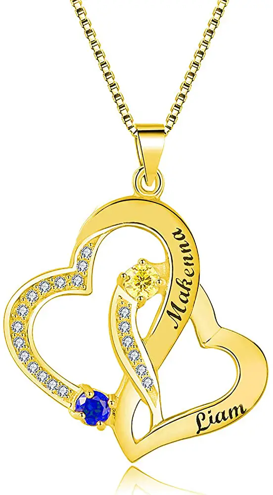 - This personalized double heart necklace with birthstones makes the most perfect gift for so many occasions, weddings, birthdays or as the perfect staple in your own jewelry collection. It’s a meaningful gift for your children, girlfriend, wife, family, loved one or a special treat just for yourself.