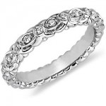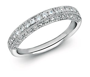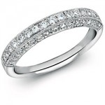 Antique Diamond Bands: Also classified under the term “heirloom”, antique diamond bands are any number or combination of designs, with the outstanding feature of having delicate engraving, beading or other fine details around the edges to create an ornate look. They are highly versatile and compliment a simple solitaire or matching antique engagement ring.