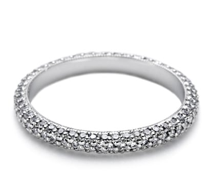 Micro Pave Diamond Bands: Micro pave bands are those in which an intricate diamond setting is paved with small diamonds, creating a glittering and delicate look. They can have dozens or even hundreds of tiny diamonds painstakingly placed into the setting.