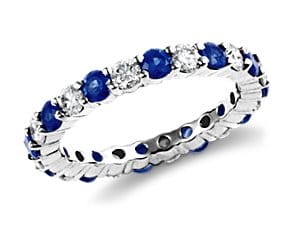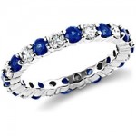 Colored Diamond Bands: Although diamonds are the most widely used for wedding bands, many women like to use colored stones such as emeralds, rubies, sapphires or birthstone gems. They can have a full set of colored stones or alternate them with diamonds.
