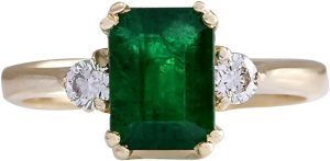 1.94 Carat Natural Green Emerald and Diamond (F-G Color, VS1-VS2 Clarity) 14K Yellow Gold 3 Stone Engagement Ring for Women Exclusively Handcrafted in USA