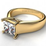 With diamond solitaire rings, the style and size of the band is very important. A thin band greatly accentuates the size of any diamond, making it a popular choice for smaller stones and more delicate hands. A thick band provides a large variety of options for the diamond’s setting and is an excellent choice for average to large diamonds. The band may be in any type of preferred metal, although yellow gold tends to accentuate the diamond the most. To provide additional flair and design to the band, some opt for two-tone bands, engraving, beading or miligrain details.