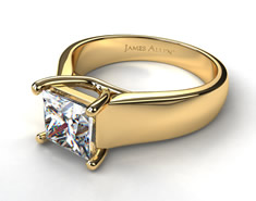 With diamond solitaire rings, the style and size of the band is very important. A thin band greatly accentuates the size of any diamond, making it a popular choice for smaller stones and more delicate hands. A thick band provides a large variety of options for the diamond’s setting and is an excellent choice for average to large diamonds. The band may be in any type of preferred metal, although yellow gold tends to accentuate the diamond the most. To provide additional flair and design to the band, some opt for two-tone bands, engraving, beading or miligrain details.