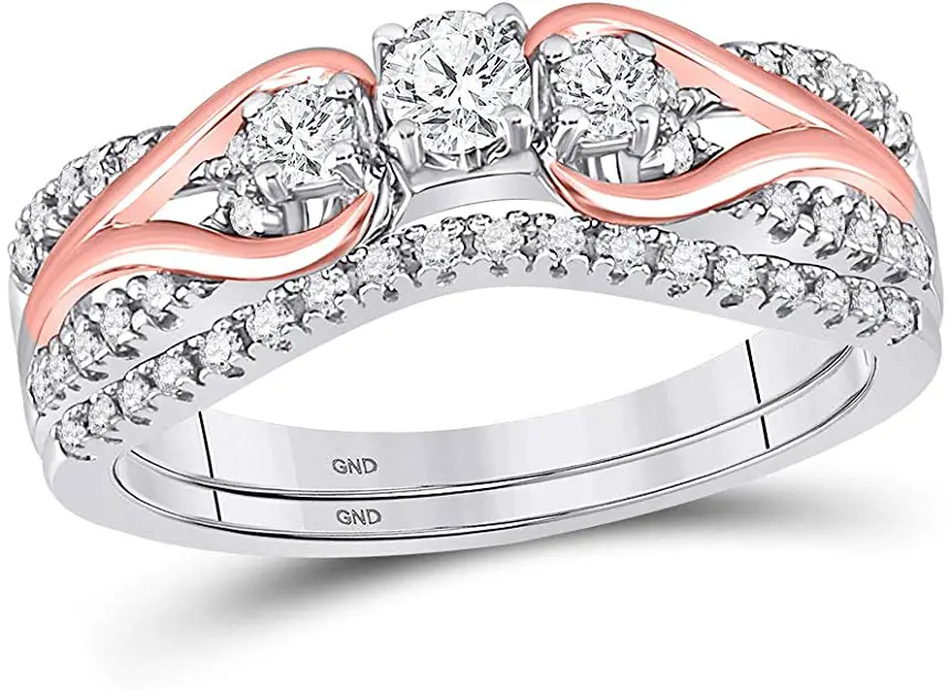 Solid 14k White Gold Rose-Tone Round Diamond Knot Bridal Wedding Engagement Ring Band Set 5/8 Ct.