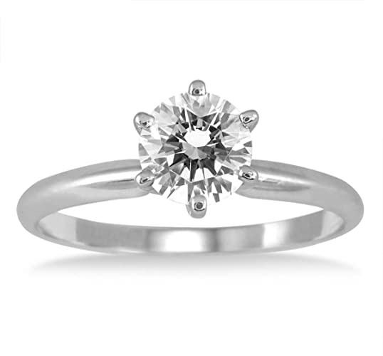 - A stunning round diamond weighing one carat is placed in a 14K white gold solitaire setting. A fantastic deal on a diamond solitaire ring that will be cherished for a lifetime. The American Gem Society Laboratory (AGS) inspects this item individually and issues an Evaluation Report verifying diamond authenticity and quality.