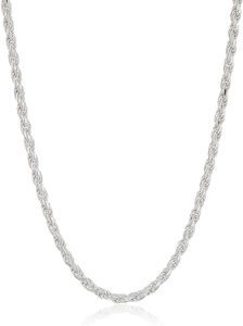 Amazon Essentials Gold or Rhodium Plated Sterling Silver Diamond Cut Rope Chain Necklace