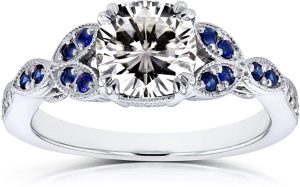 - Moissanite (GH), sapphire, and diamond floral vintage engagement ring