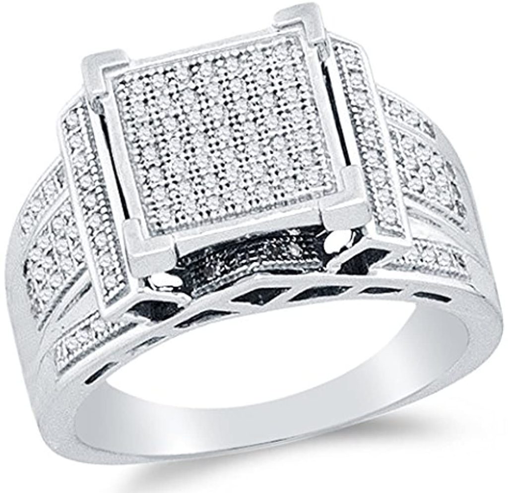 Sonia Jewels 925 Sterling Silver Round Diamond Engagement Ring – Micro Pave Square Princess Center Setting Shape (2/5 cttw.)