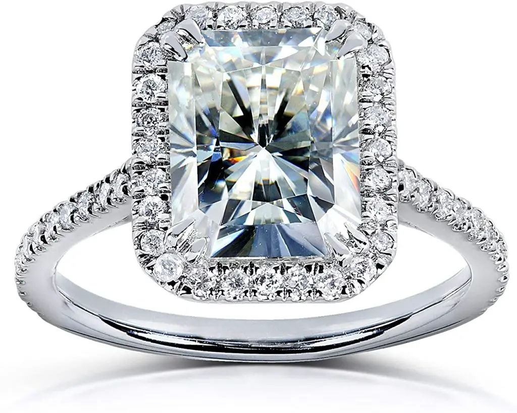 - Large Halo Moissanite and Diamond Engagement Ring by Kobelli