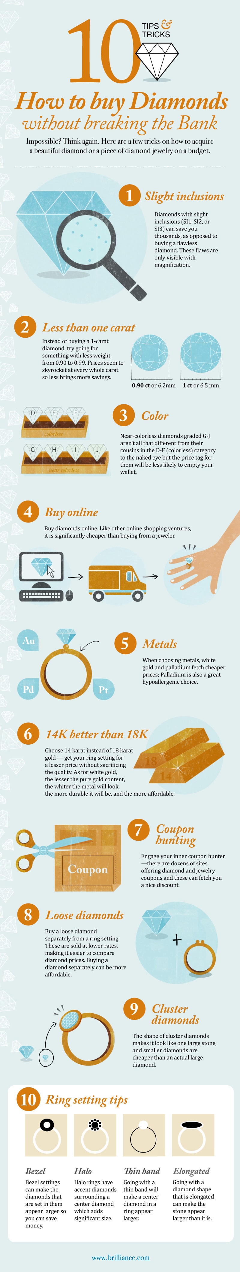 Tips & Tricks for Buying a Diamond Leave a Comment / Buyer's Guide, Diamonds, Education, featured, slideshow / By DA Team Are you thinking of proposing soon but don’t know where to begin in the somewhat confusing diamond buying process? Here are ten of our best tips and tricks for buying a diamond made simple: