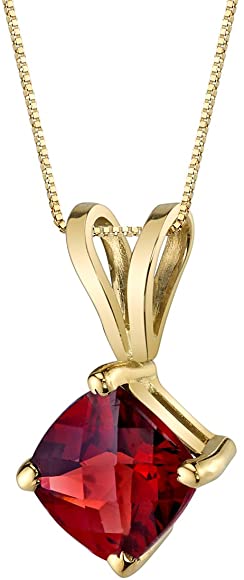 - CLASSIC GARNET GOLD PENDANT FOR WOMEN – We’ve taken the timeless solitaire favorite and gave it a colorful twist with our Peora 14K Gold Pendants Collection. Featuring natural gemstone and genuine Peora Garnet, Cushion Cut, 6mm, 1 Carat with its signature deep Plum Red hue for a luxurious glow. Stone has a flattering checkboard faceting, set in 14 Karat Yellow Gold for maximum sparkle in every angle. Versatile, feminine and flattering, this gold pendant is a jewelry essential.