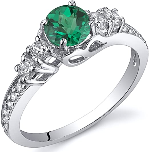 - LASTING COMFORT – This skillfully carved Peora Simulated Emerald Ring is robust and made for comfort, ready to be enjoyed in all elements. It is available in a range of sizes from 5 to 9. Its adaptable design allows her to wear it for any event, and the bright white Rhodium finish reminds her of how much she means to you every time she sees it gleaming.