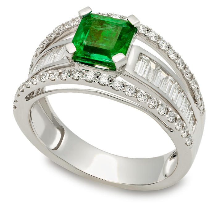 - SPARKLING RING – A stunning 14K White Gold Ring that is functional and adaptable. Peora Created Emerald, Cushion Cut, 8mm, 2 Carats, deep Forest Green color, SI1-SI2 Clarity, Peora Created Emerald, Cushion Cut, 8mm, 2 Carats, Peora Created Emerald, Cushion Cut, 8mm, 2 Carats, Peora Created Emerald, The stone’s checkerboard faceting makes it glitter even more from every angle. This vintage-inspired ring is stunning as an engagement ring, cocktail ring, anniversary ring, and statement piece, with glittering genuine White Topaz stones.