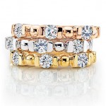 Diamonds and moissanite are two uniquely different and beautiful jewels. They are both are sparkly, durable and generally colorless, with the exception of potential yellow, green or grey hues. However, there are some important distinctions. From a cost standpoint, the most significant difference is price, with moissanite being substantially more affordable. Both stones are very brilliant, but moissanite has a higher brilliance than that of a diamond when comparing the refractive index (moissanite’s RI is 2.65-2.69 vs. a diamond having an RI of 2.24). Also notably different is their chemical makeup. Moissanite is composed of silicon carbide and diamond’s composition are that of carbon.