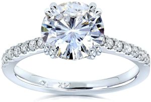 It’s natural to be concerned about the cost of engagement rings, especially when because moissanite engagement rings are nearly as expensive as diamond engagement rings. Even though the two gemstones have nearly identical properties, the price difference is significant. A 7mm round moissanite gemstone will cost approximately $200, while a 1.25ct moissanite will cost between $20 and $40. The size of the stone makes the most significant difference in price, which is why a 1.00ct moissanite ring will cost approximately half as much as a diamond ring of the same size.