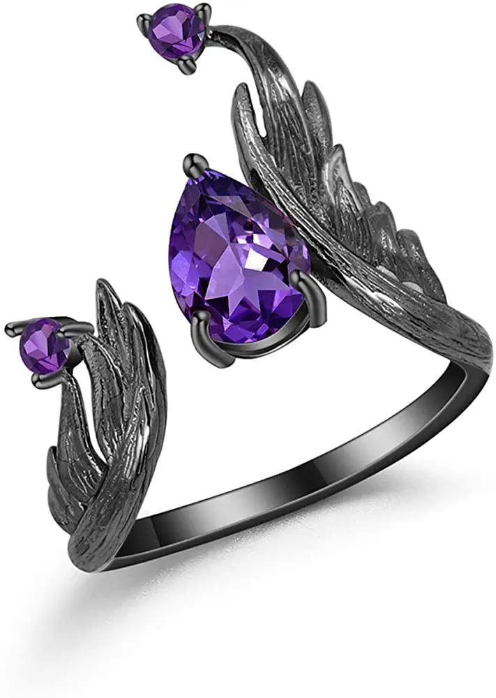 1.43Ct Amethyst Rings Angel’s Wing Original Handmade Birthstone Ring for Women Birthday Jewelry Gifts Adjustable Open Rings