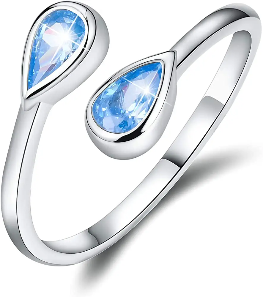 Esberry✦Gifts for Mother’s Day✦14K Gold Plating 925 Sterling Silver Birthstone Rings Pear Shape Cubic Zirconia Rings Double Gemstone Adjustable Rings Birthday Gifts for Women Girls Mom Mother Wife Girlfriend