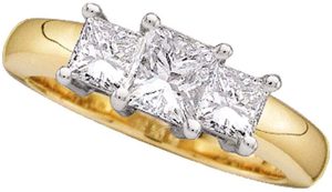 Diamond Solid 14k Yellow Gold Ladies Princess Cut 3 Three Stone Engagement Ring 1/2 Ctw. (.50 Ctw.)