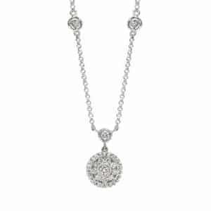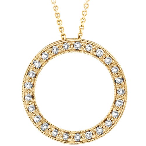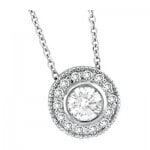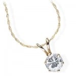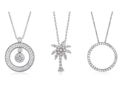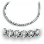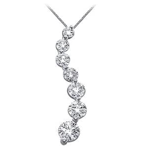 - Solitaires: One of the most versatile and popular styles of diamond necklaces in jewelry and department stores, a single diamond on a delicate chain is an eye-catching and simple option for many women these days. This style differs from the other diamond necklaces in that the eye’s attention is drawn to one single stone. Any number of shapes and sizes are a possibility, however the most classic options are a round or princess solitaire. This type of necklace is one of the most versatile because it can be worn daily by a mother, working professional, student or even as an addition to intricate formal attire. A diamond solitaire necklace is the perfect birthday, Christmas, Valentine’s Day or anniversary gift.