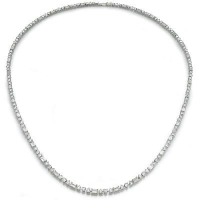 - Strands: Much like a strand of pearls, a continuous row of diamonds is the hallmark look of a strand of diamonds. Adding glamor and class to any attire, this type of necklace is a classic addition to any wardrobe. Strands of diamonds are generally found in the 14-20 inch range, with the shorter lengths being the most popular. This makes for a perfect anniversary or wedding gift because the continuous row of diamonds symbolizes the continuous, unending love and admiration a couple has for one another.