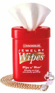 Most stores carry inexpensive liquid jewelry cleaners which are a convenient way to clean diamond simulants or any other type of jewelry you may have. Some of these cleaners are liquid with a small cleaning brush to get into the grooves of your jewelry, while others are in a cloth/wipe format. Both types are acceptable, but many people tend to find that the liquid cleaners get into spaces that disposable wipe cleaner cloths might not be able to reach. Be sure to check the label before purchasing to ensure that the cleaner will work for all types of stones.