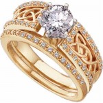 Another popular choice for couple wanting something a little different to symbolize their love is either an Irish Celtic or a Claddagh ring. Celtic rings are usually designed with knotted, interwoven strands of metal or engravings representing the threads which tie two people or families together in marriage. Claddagh rings are full of folklore and history. The two metal hands holding the center heart or crown represent love (heart), friendship (hands) and loyalty (crown). One need not have Irish ancestry or ties to Ireland to wear a Celtic or Claddagh ring as an engagement ring.