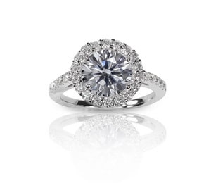 The halo setting is ideal for statement pieces, as it features an impressive amount of diamonds. The center stone is always the largest of all the other stones in the ring and it is surrounded by a concentric circle comprised of smaller gemstones that can be diamonds or diamond simulants, such as lab-made pieces or moissanite.