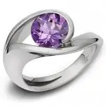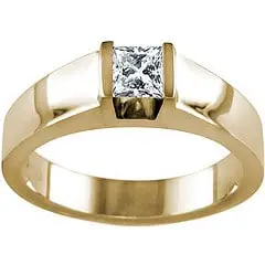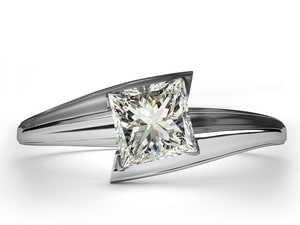 This type of diamond ring setting features two metal bands that hold the centerpiece between them. It is meant to draw attention towards the diamond center but unlike solitaire or Tiffany settings, it permits the diamond to be of virtually any shape. Due to the fact that the diamond appears to be suspended between the two parts of the metal shank that unite in the middle, the pieces put a particular emphasis on the beauty of the diamond.